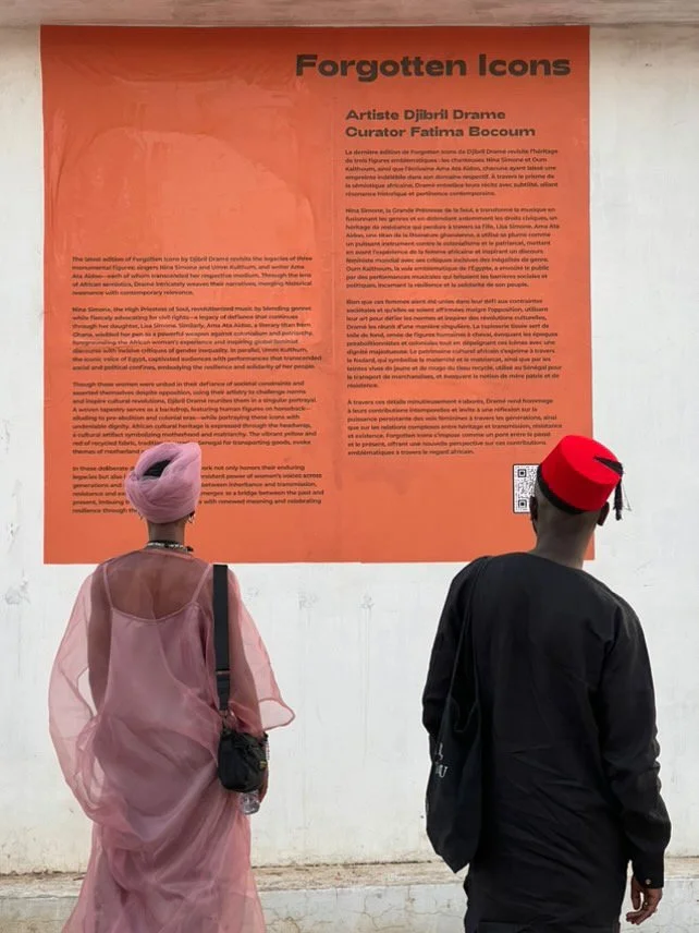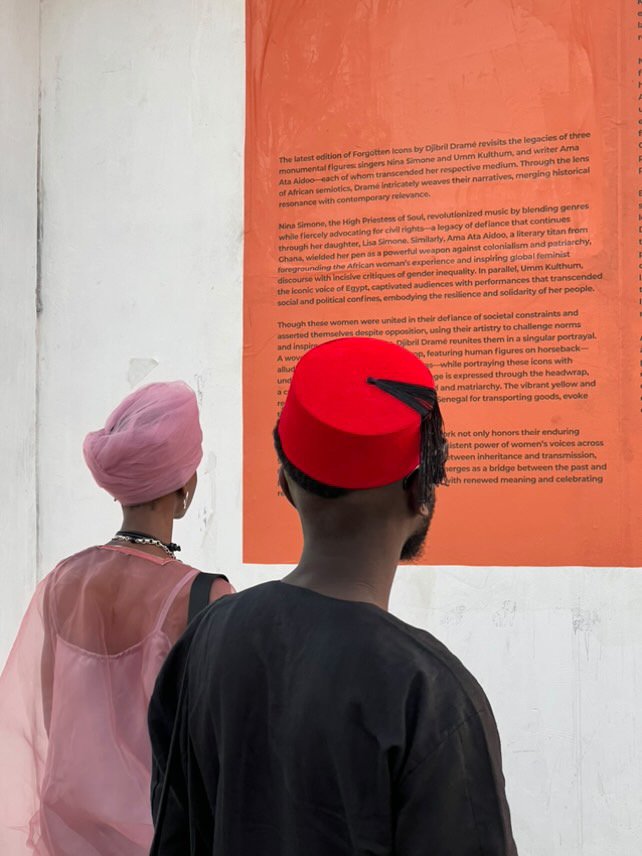 La dernière édition de Forgotten Icons de Djibril Dramé revisite l’héritage de trois figures emblématiques : les chanteuses Nina Simone et Oum Kalthoum, ainsi que l’écrivaine Ama Ata Aidoo, chacune ayant laissé une empreinte indélébile dans son domaine respectif. À travers le prisme de la sémiotique africaine, Dramé entrelâce leurs récits avec subtilité, alliant résonance historique et pertinence contemporaine.